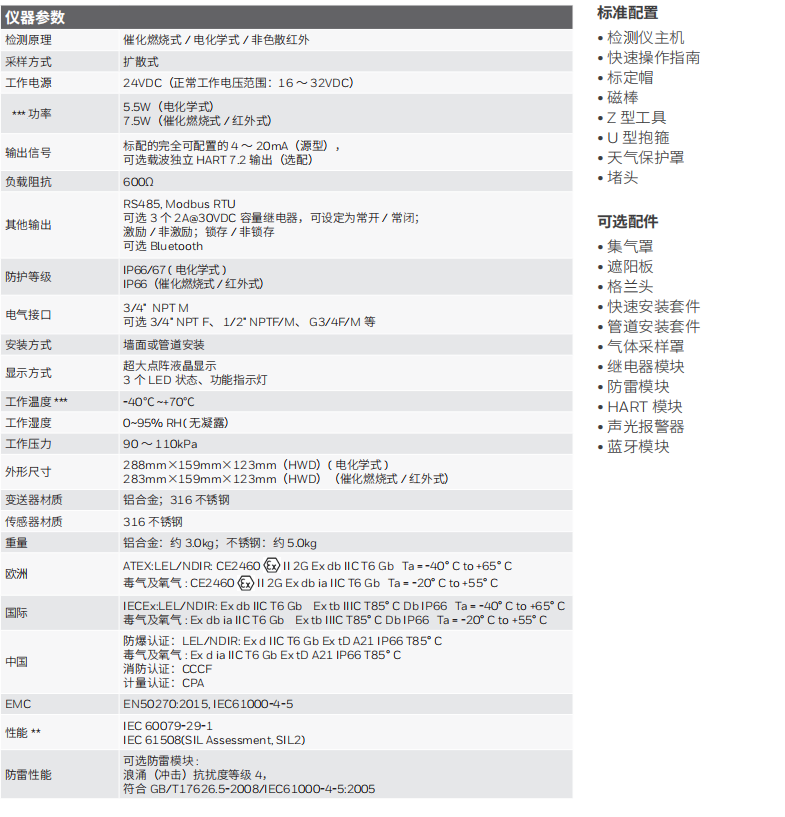 • 可选一体化声光报警器,光、声不断提醒,危险报警信号不会再被忽略
