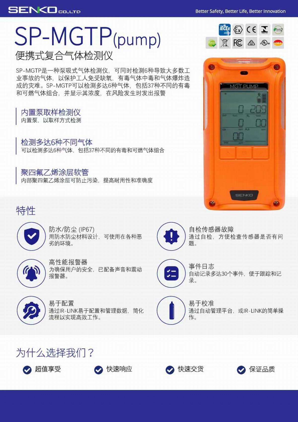 SP-MGTP泵吸式四合一气体检测仪