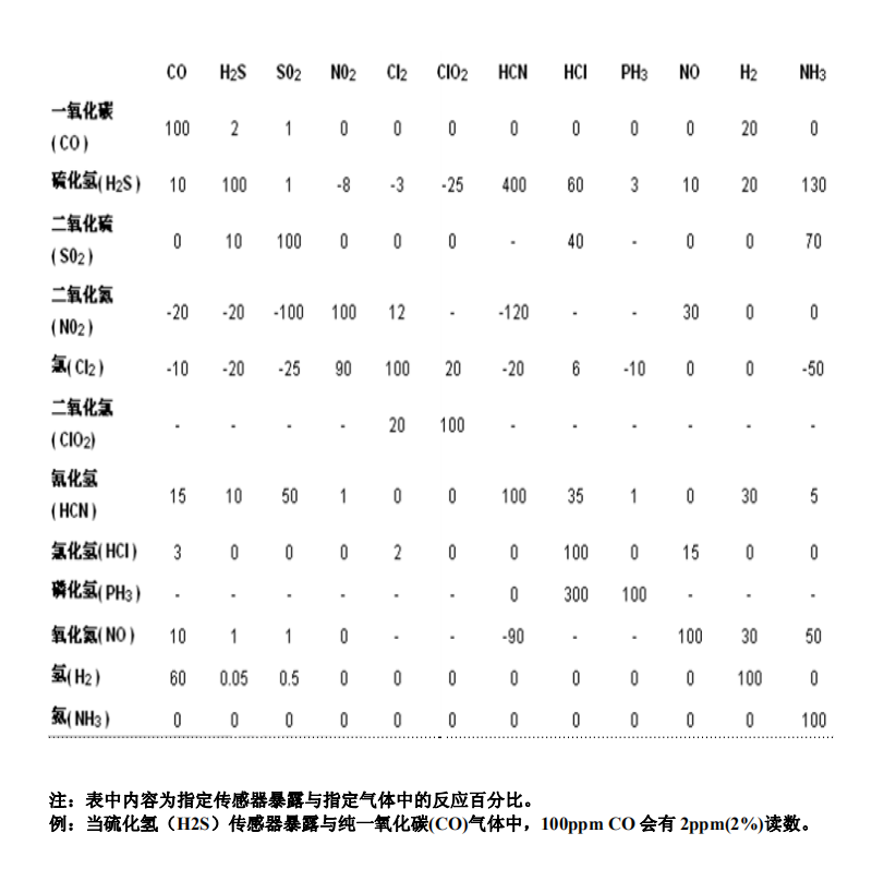 传感器交叉参考表